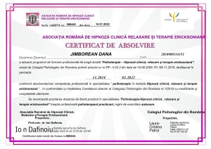 Eliberat de Asociatia Romana de Hipnoza Clinica, Relaxare si Terapie Ericksoniana